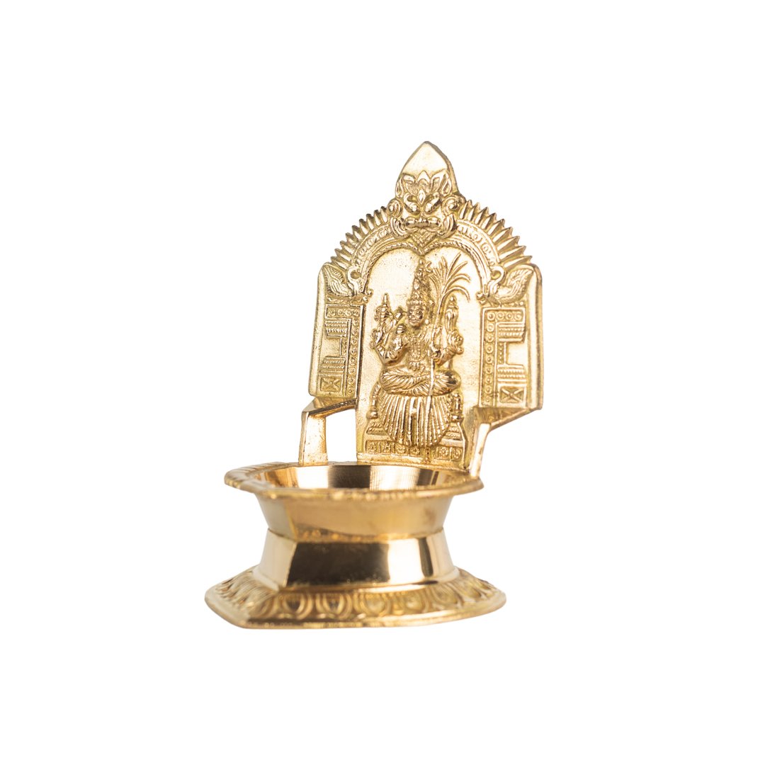 Keep divinity thriving with our exquisitely crafted brass Kamatchi vilakku. As a sacred symbol of grace, prosperity, and spiritual awakening, our range of brass Kamatchi amman vilakku is crafted from premium quality brass and endowed with sleek contours. Embossed with a graceful form of goddess Kamatchi, our charming lamp emits a golden glow and has exceptional heat resistance capabilities. Extremely durable with ease of maintenance, our Kamatchi vilakku brass range makes an ideal gift option too!