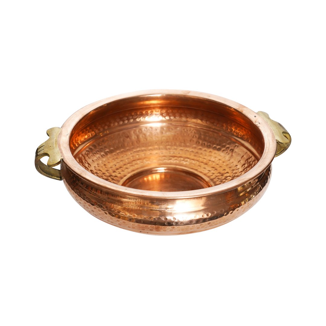 Standing as a timeless symbol of abundance and tranquil bliss, our artfully crafted Copper urli can be filled with fragranced water, flowers, or floating lamps to enrich the ambience of your favourite space. Crafted from premium copper with a wide mouth and graceful curves, this beautiful copper urli emits a golden glow and adds elegant aesthetics to the surroundings. Valued for its durable strength and auspicious charm, this copper urli is an ideal gift choice too!